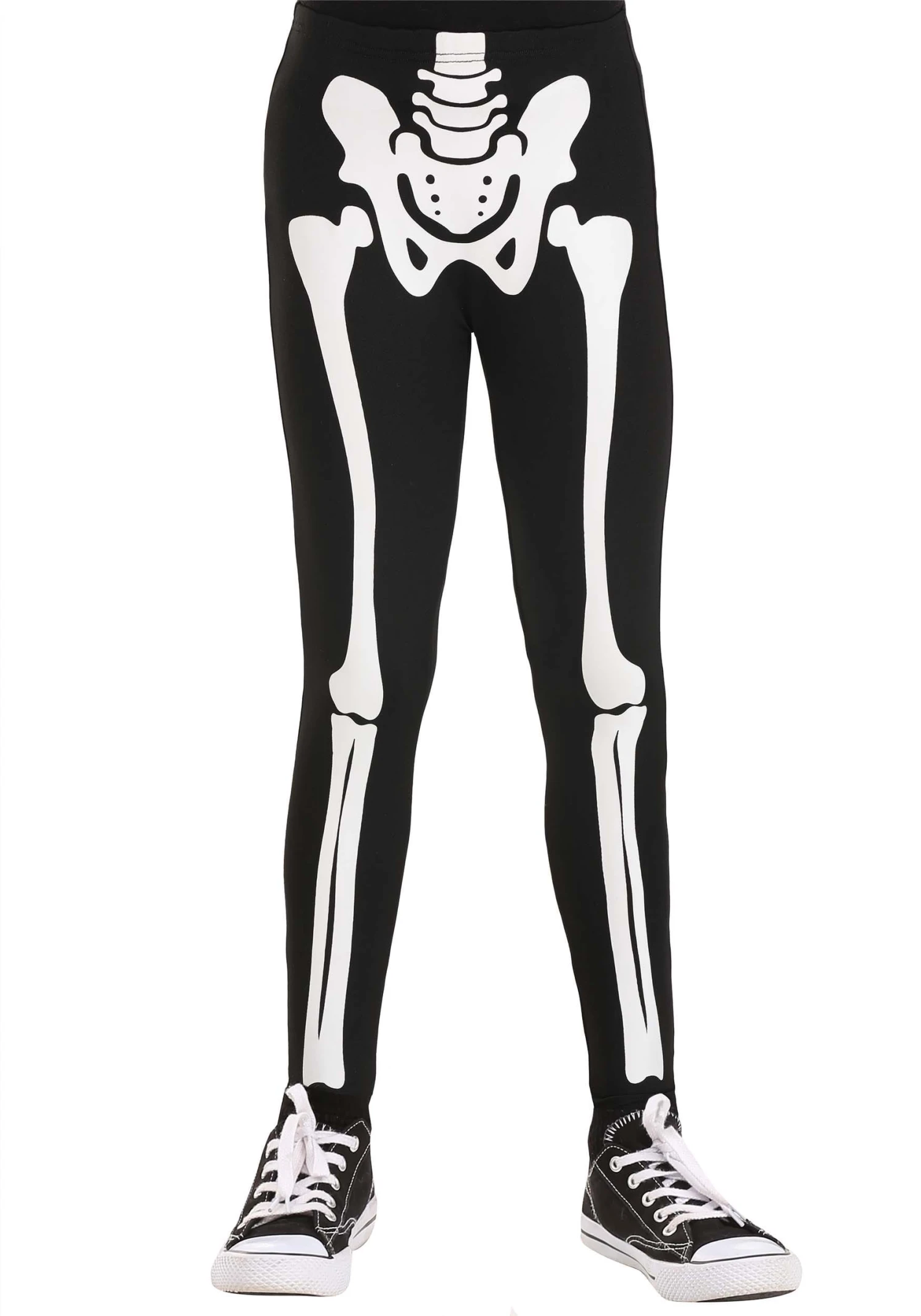 Add a spooky touch to your outfit courtesy of these exclusive Classic Skeleton Leggings for Kids! Made of a breathable poly-spandex stretch knit fabric, the slim-fit black leggings are printed on the front with white bone graphics. The elastic waistband makes the leggings extra comfortable. Wear them with your favorite everyday top or pair them with a skeleton shirt!