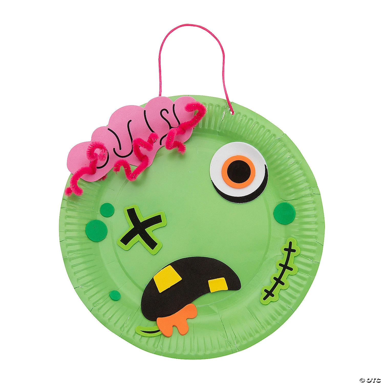 • CRAFTING FUN FOR SCHOOLS: Craft kits make great activities for students to enjoy during class or a classroom Halloween party.• TRICK-OR-TREAT FAVORS: Offer craft kits as a fun candy-alternative handout to kids attending a neighborhood party or trunk-or-treat event.• DECOR FOR YOUR HOME: Use our Halloween crafts to create unique and festive decorations to give your home that perfect spooky look.Product Description:This big green monster is quite obscene! Its brains are falling out, it’s missing an eye and is a bit unclean. Kids will have a blast assembling this silly zombie and can take it home and hang it up as a Halloween decoration. This easy craft is a fun activity for a Halloween party in the classroom, daycare or at home. All craft kit pieces are pre-packaged for individual use. Kits include instructions. © OTC Size: 9″ diam.Quantity: Makes 12.Material: Includes self-adhesive foam pieces, paper plates, chenille stems and satin cording.