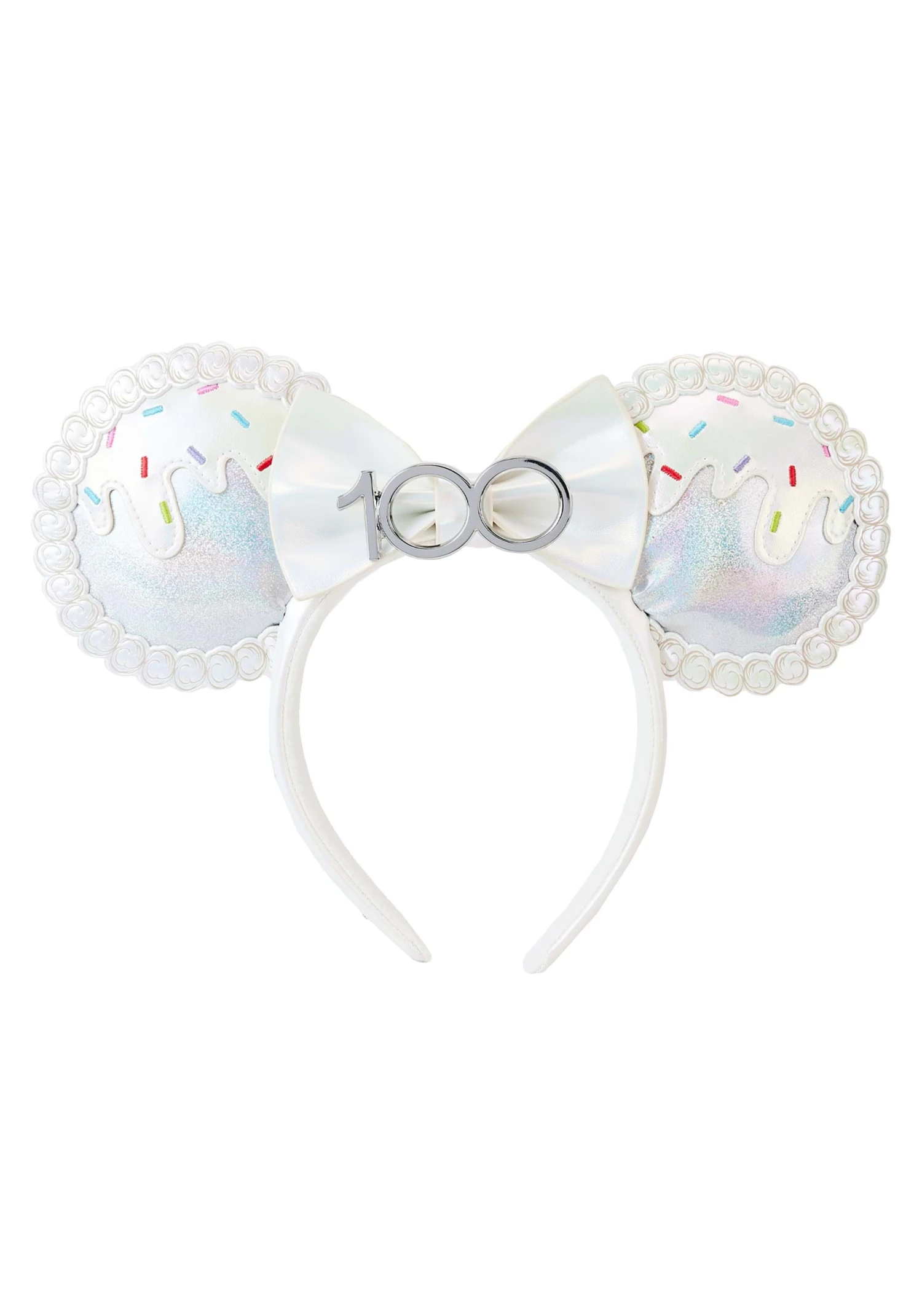 A dessert-inspired delight comes alive on the ears, echoing the legacy of 100 years of storytelling. The intricate embroidery of playful sprinkles dances alongside debossed icing, culminating in the central detachable 3D bow adorned with the magical number “100.” Spin it around and let the phrase “100 Years of Wonder” on a shimmering silver backdrop serve as a testament to Disney’s timeless charm.
