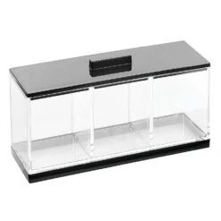 MDesign Cosmetic Divided Organizer Canister Box, 3 Sections And Lid, Clear/Black