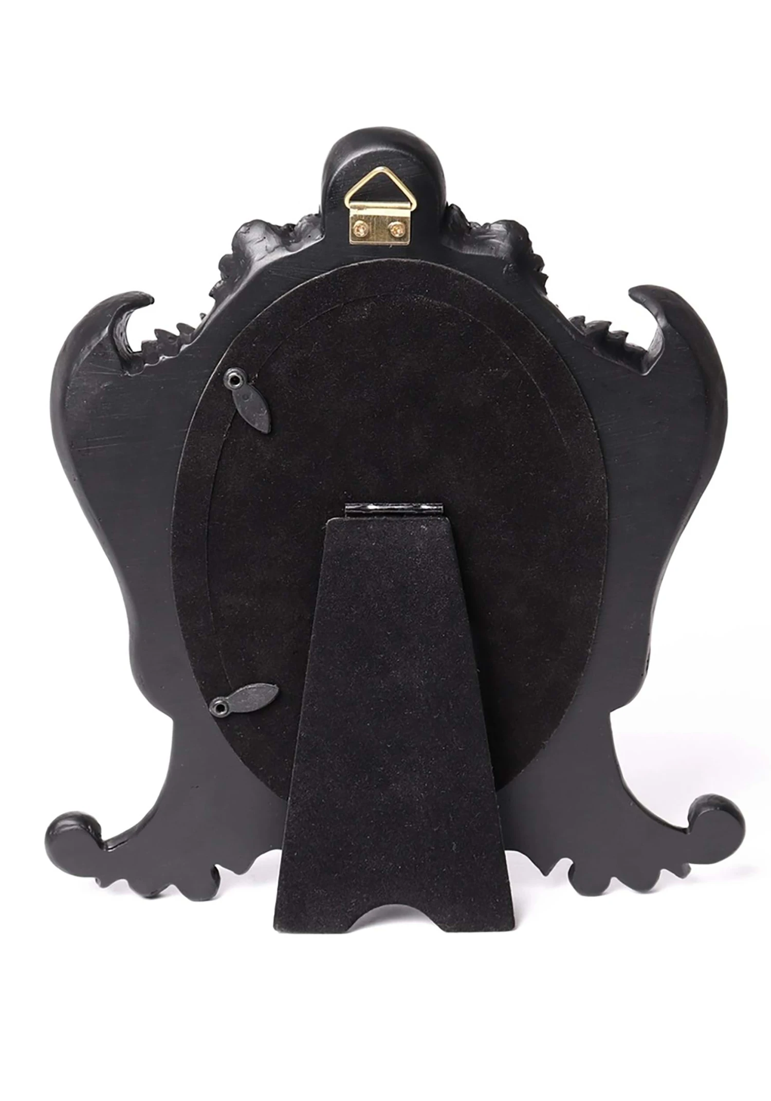 The family picture wall is such a lovely trip through the past. We have so many wonderful memories captured in these frames. Here is where we got our first pet. Here is us waving from the edge of the Grand Canyon. Here is where we both became certified necromancers and detonated a ragged hole into the netherworld. Such fun! This Nosferatu Picture Frame will lend a sinister gothic air to any picture you showcase inside it. The molded black frame includes depictions of skulls, roses, dragons and a snarling bat.