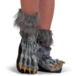 Skeleteen Werewolf Feet Shoe Covers – Silver Grey Were Wolf Monster Foot Claws Costume Accessories