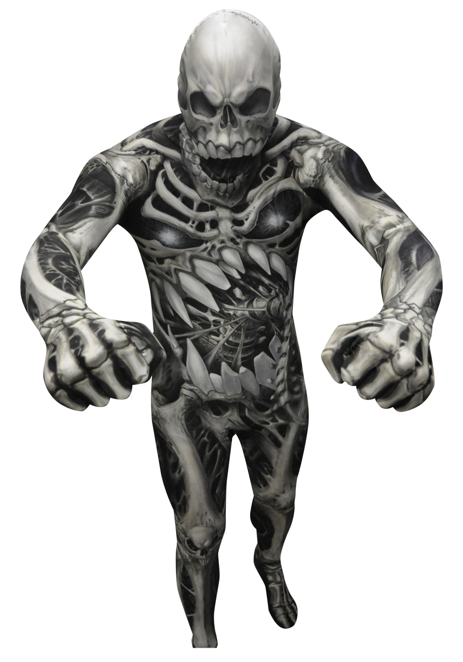 This morphsuit won’t transform you into just another bonehead that looks like he escaped from a high school biology classroom. No, this one-piece will truly make you a terror in the night. Don’t settle for looking like a regular ole skeleton that wondered too far from the boneyard. Those costumes are way over played. Go for a more original look this year. With this morphsuit you’ll transform into some sort of demonic creature from the depths of Hell! Just look at that scary face covering the torso of this costume. If haunting people’s nightmares, is what you aim to do this Halloween then you really need to look no further. We know, without a doubt, that this is the costume for you. The best thing about this morphsuit is that it is all you will need. Most other costumes have a butt-load of accessories in order to complete the horrific illusion. However this morphsuit is sure to get some good screams, needing nothing else but a body to wrap itself around!