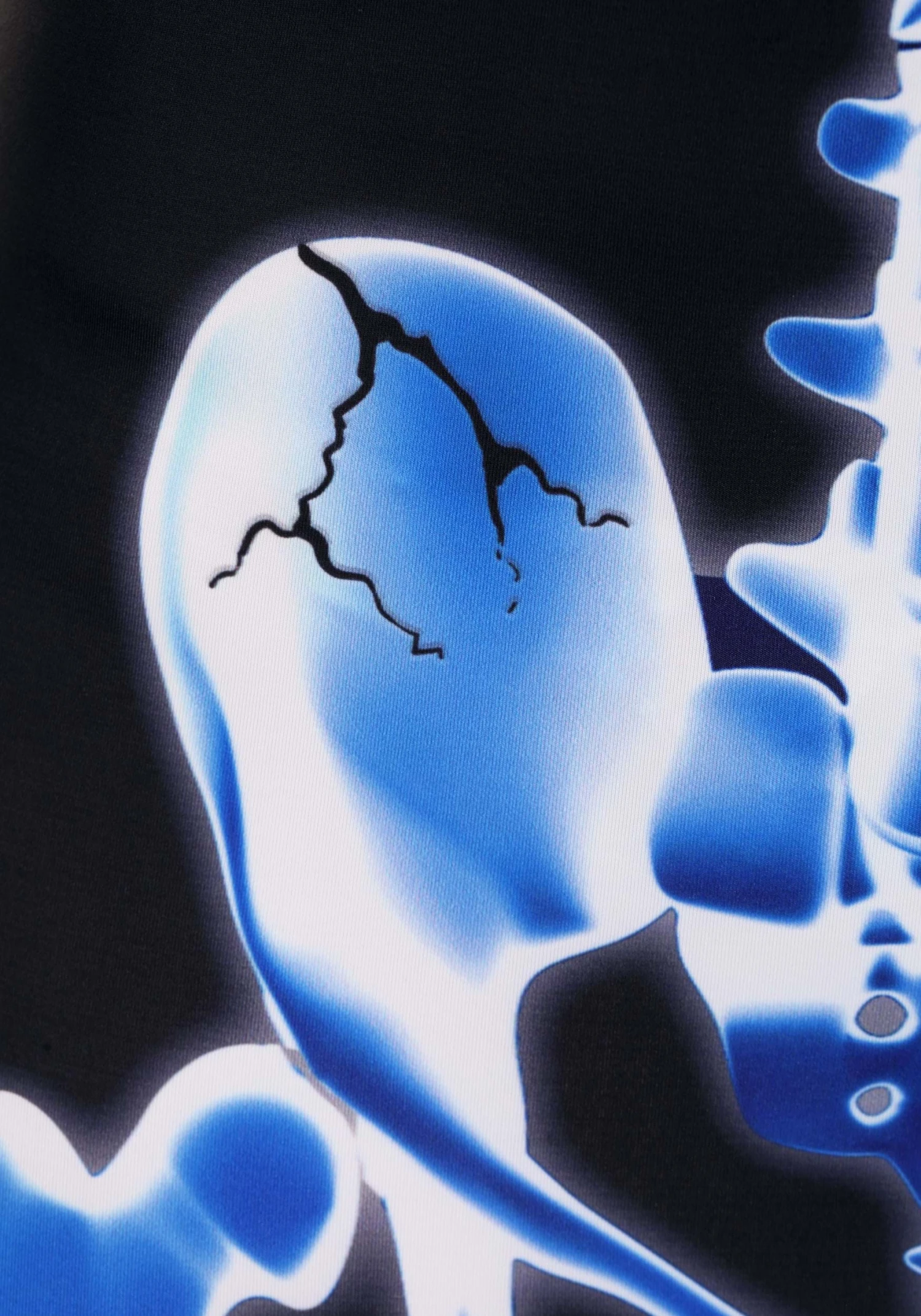 No bones about it – this exclusive X-Ray Skeleton Jumpsuit Costume for Women will be the most memorable costume of the year! The black zip-up jumpsuit is stretchy and form-fitting for comfort, with long arms and legs. The front of the jumpsuit is printed with a life-sized skeleton, complete with anatomically correct bones, that seem to glow an eerie blue. You’ll be a doctor’s dream come true but a nightmare to everyone else!